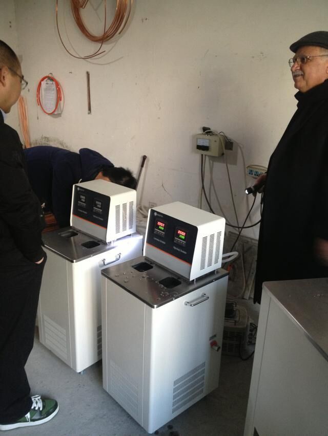 經過設備一段時間的運行和客戶的仔細檢查,驗收工作告一段落,結果顯示各項指標均符合要求,客戶對產品十分滿意,下圖為恒溫槽驗收現場。